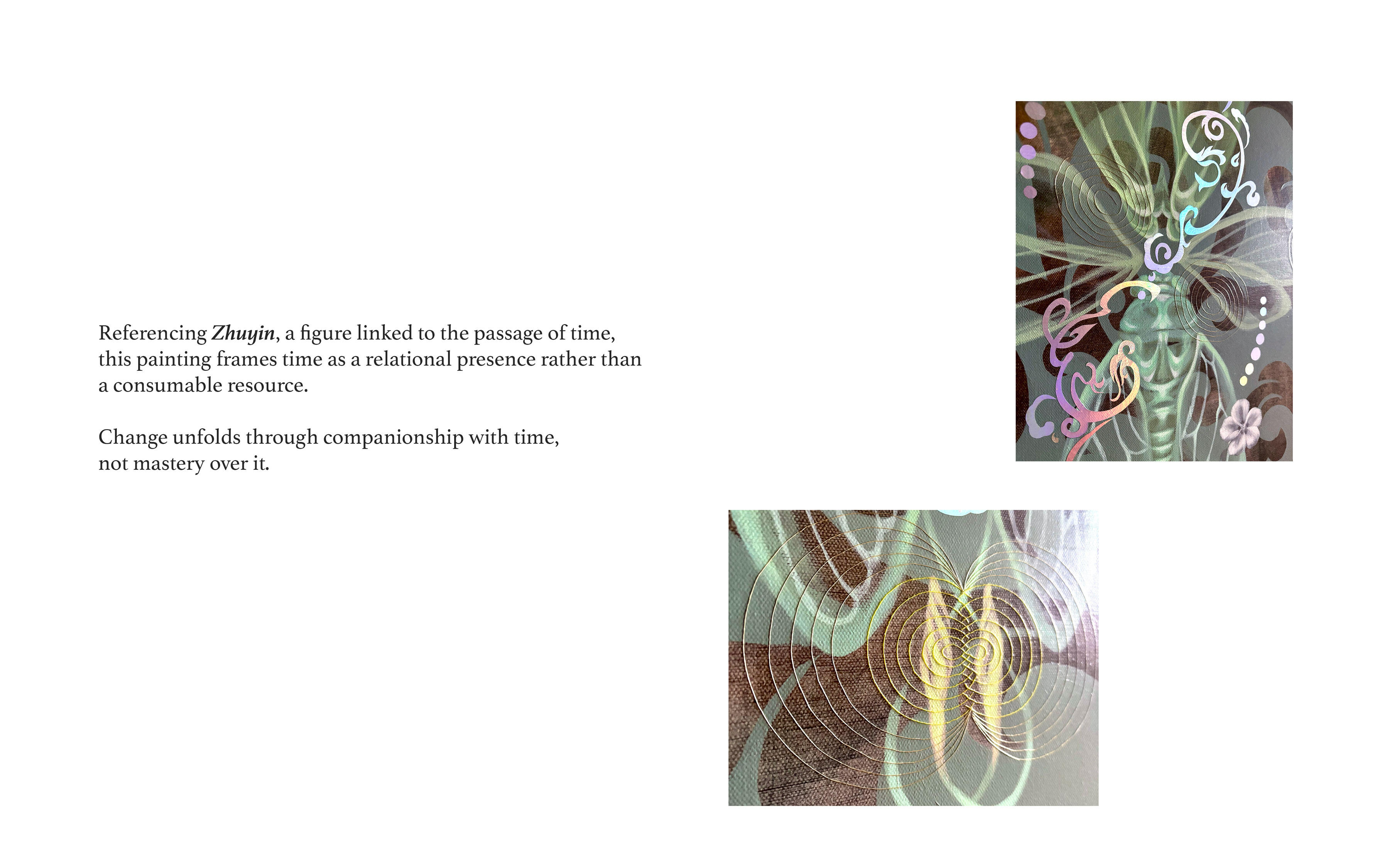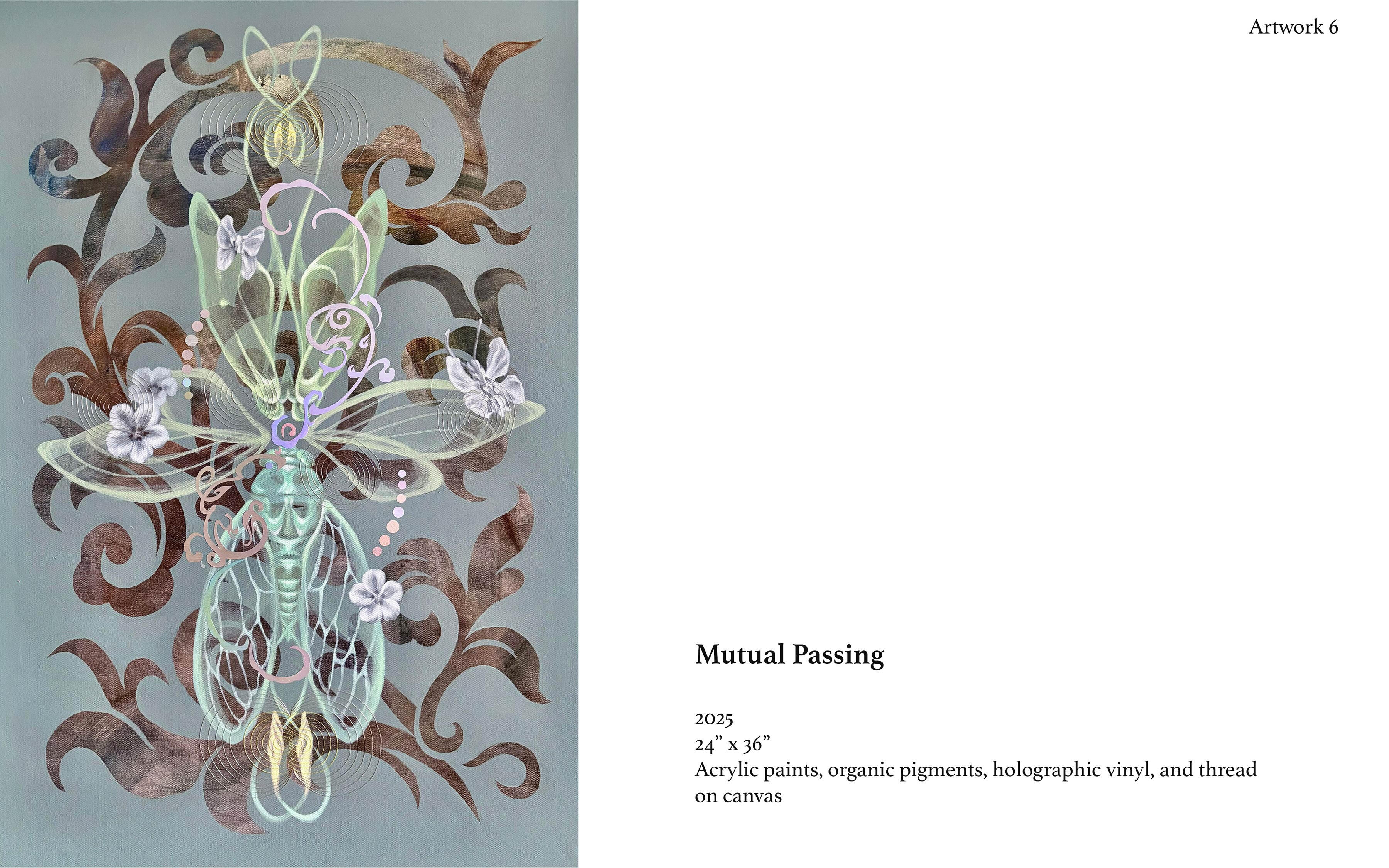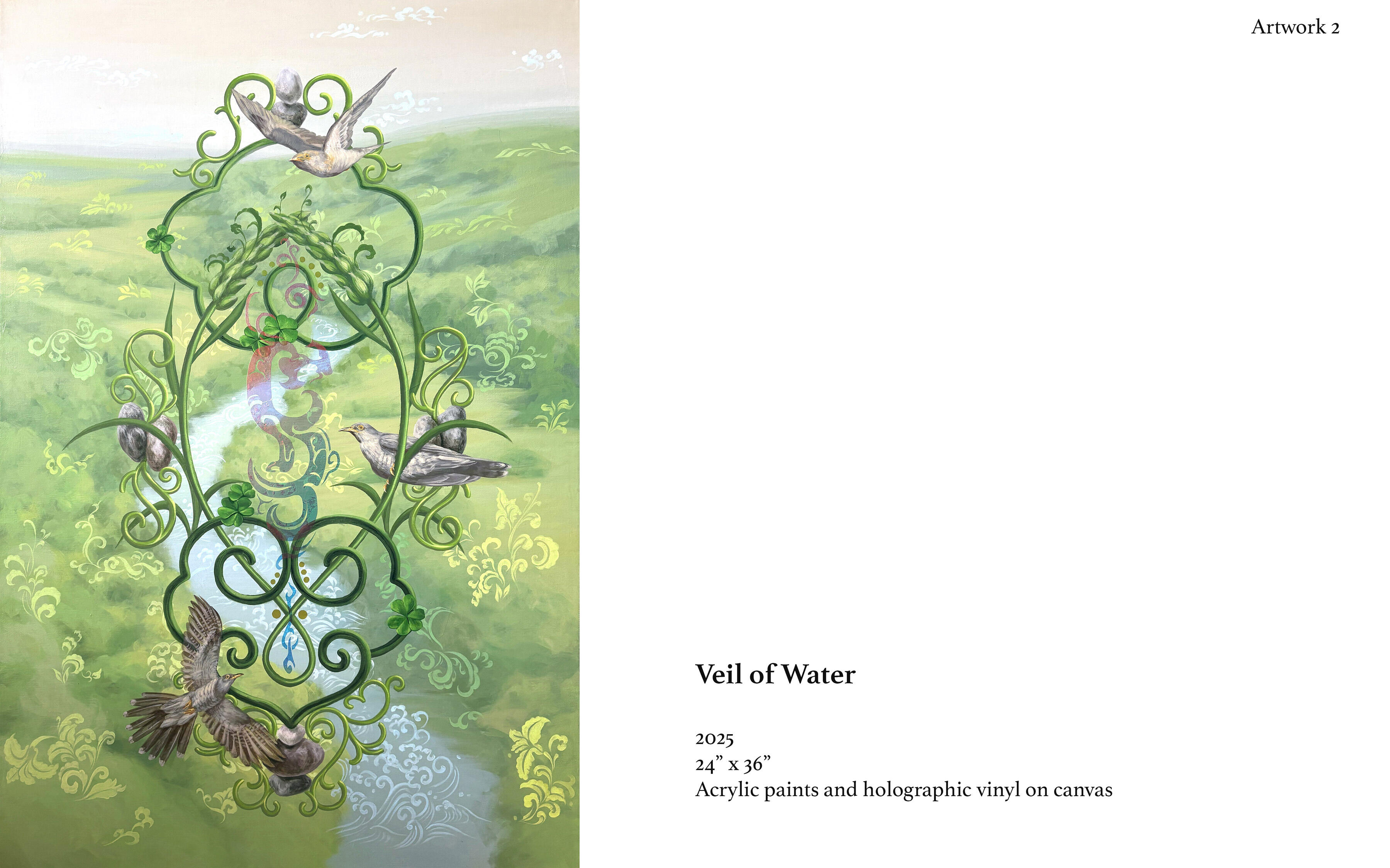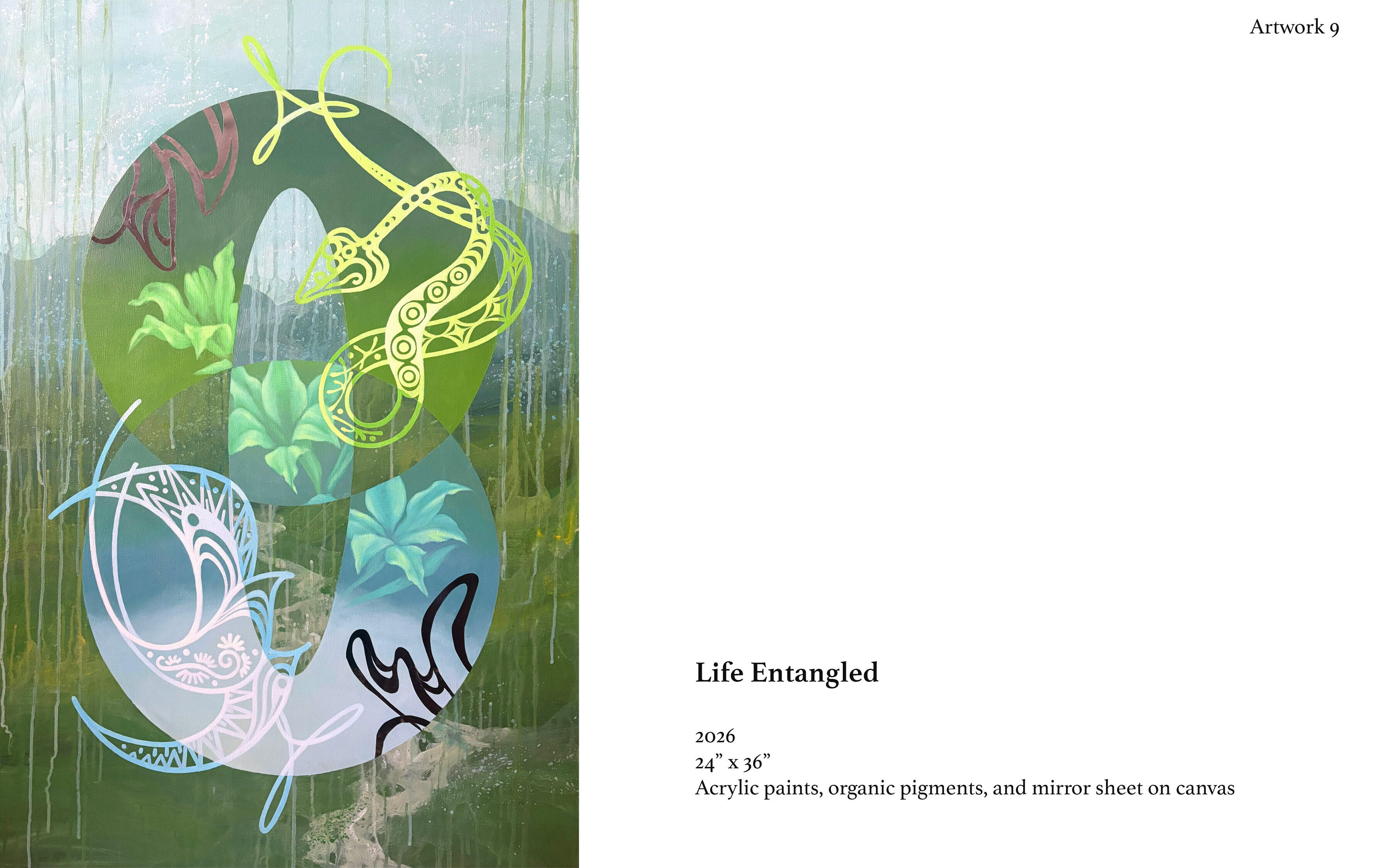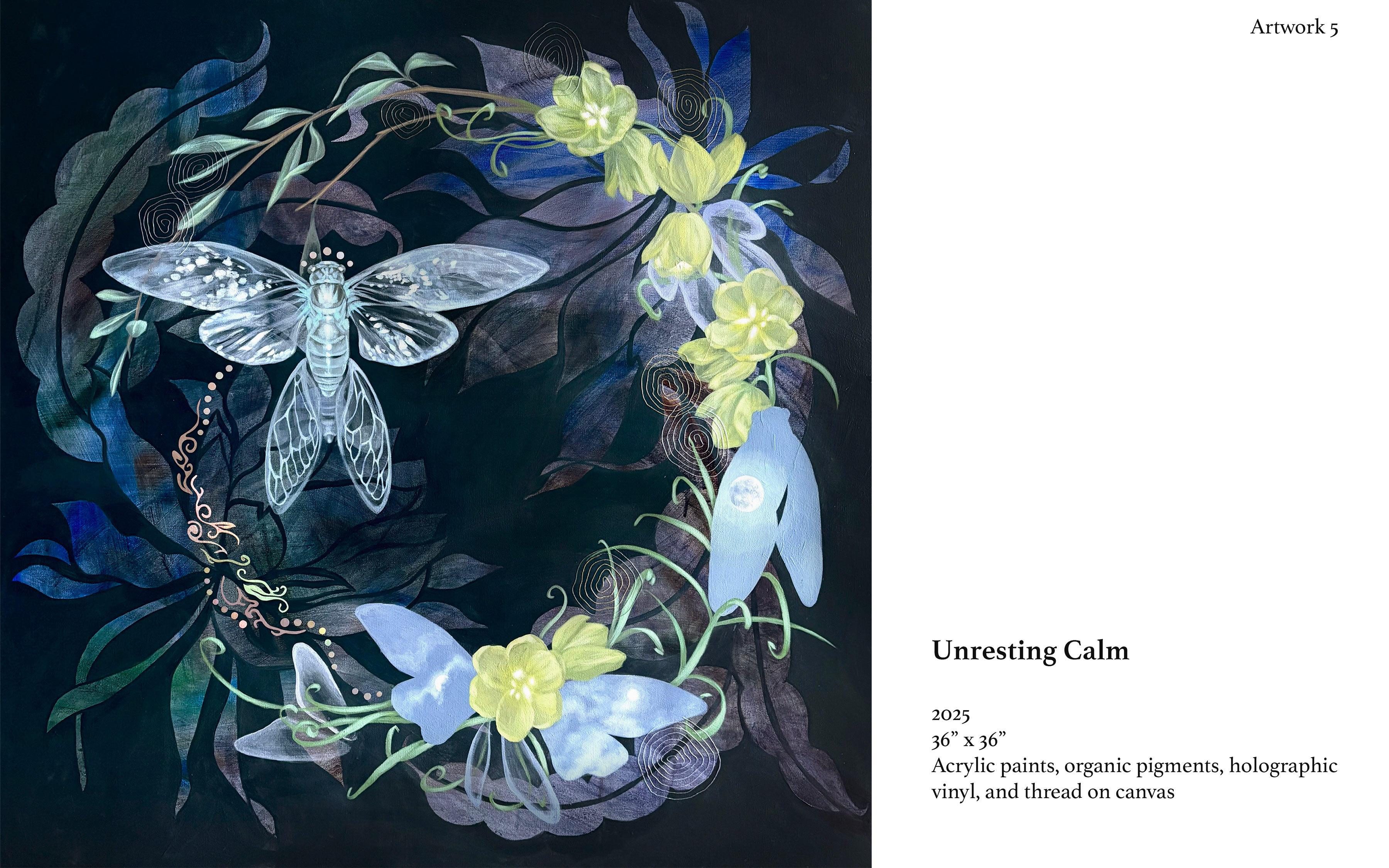Acrylic, organic pigments, and holographic vinyl on canvas