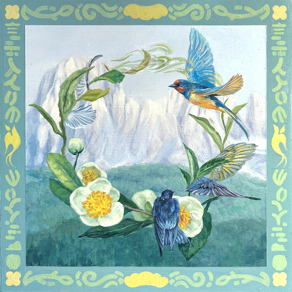 Acrylic on organic wood panel, 8" x 8"